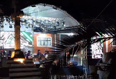 Eventos al aire libre e interiores con gran producción audiovisual y escénica para lo que requieras.